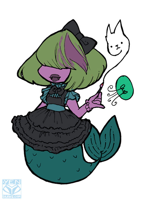 Prompt: Monsters, lolita fashion, mermaids and art.