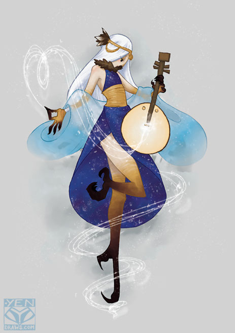 Character design challenge entry (facebook group) for the theme of 'Witch'! My entry was based around the idea of a Moon Lute and owls.