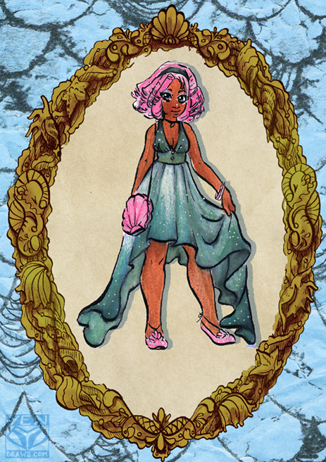 Part of a project in which I designed a mermaid and the 'human ' version as a 'fashion collection'.