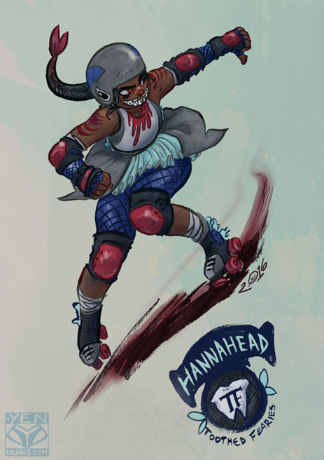 Character design challenge entry (facebook group) for the theme of 'Roller Derby'! My entry was based off of a hammerhead shark.